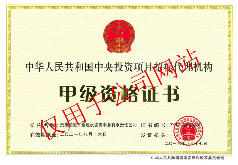 中央投資項(xiàng)目招標(biāo)代理甲級資質(zhì)證書